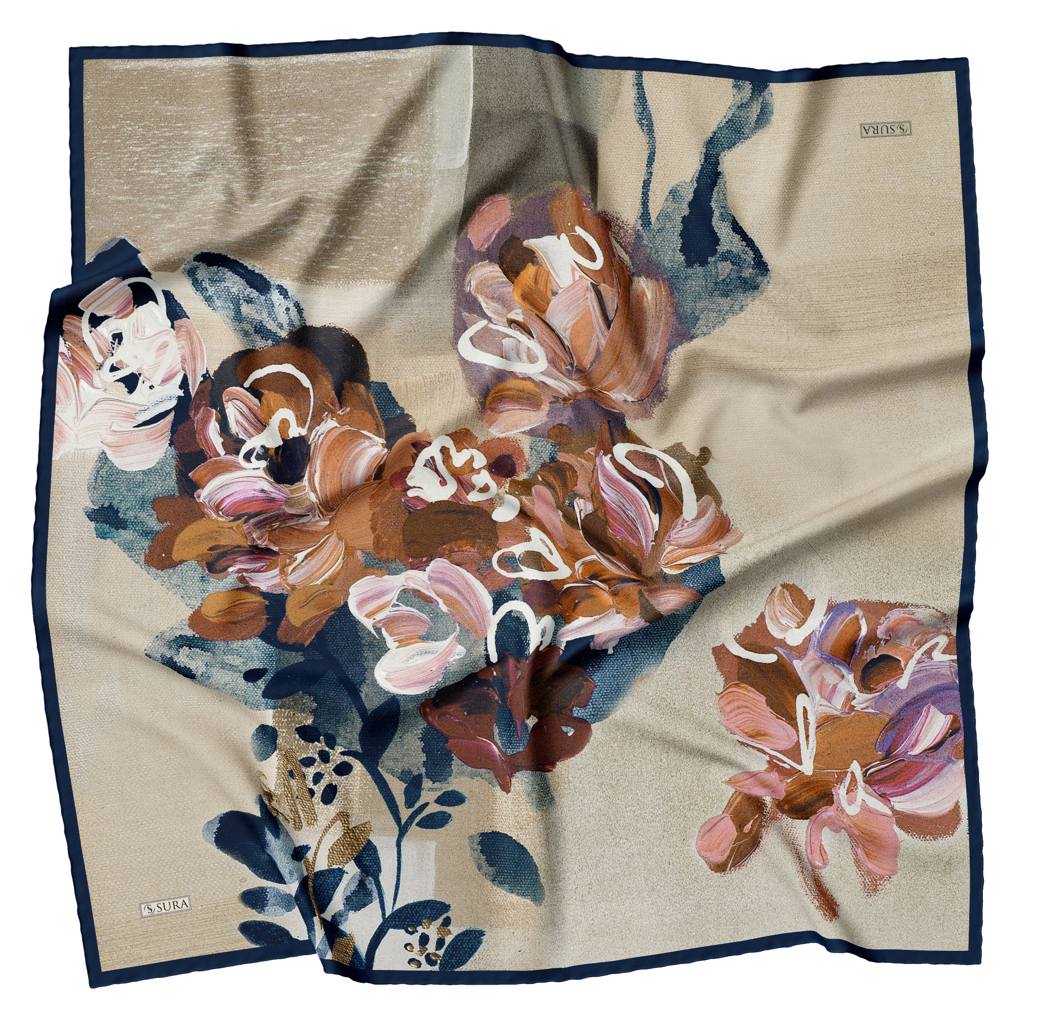 Sura İpek Eşarplar; % 100 İpek olarak 90*90 cm ölcülerinde ve kenarları tamamen el dikişi yapılarak beğenilerinize sunulmuştur.