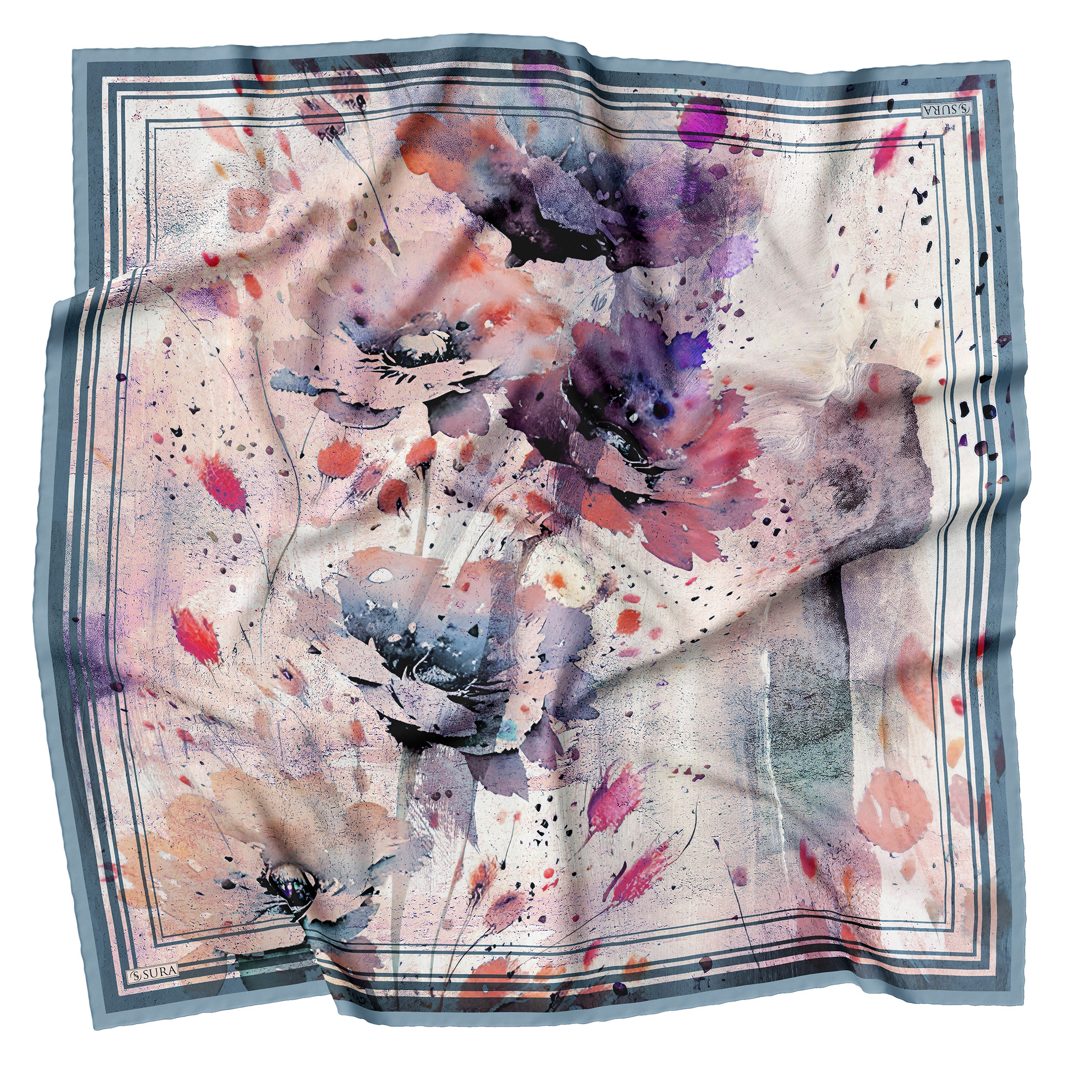 Sura İpek Eşarplar; % 100 İpek olarak 90*90 cm ölcülerinde ve kenarları tamamen el dikişi yapılarak beğenilerinize sunulmuştur.
