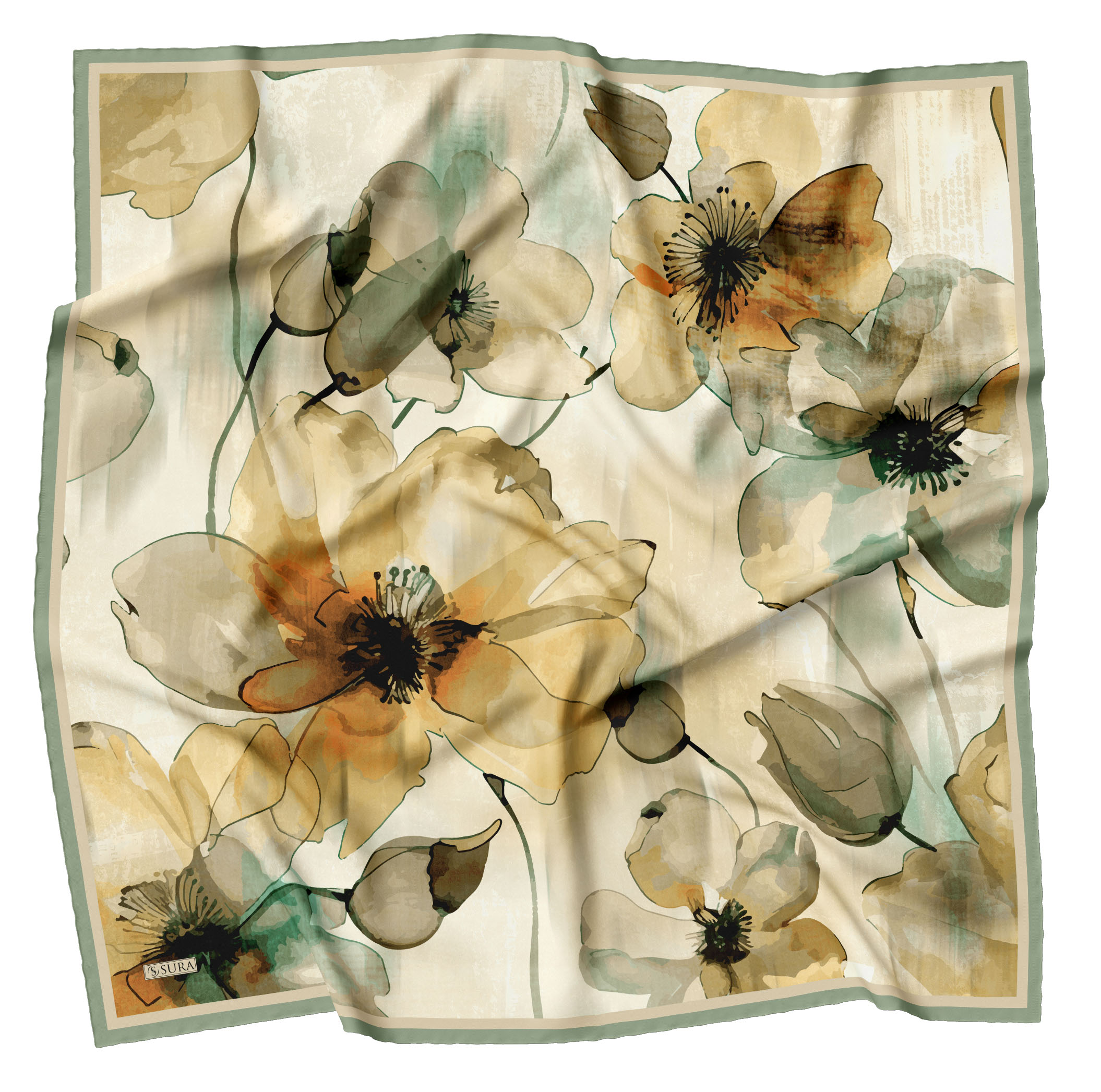 Sura İpek Eşarplar; % 100 İpek olarak 90*90 cm ölcülerinde ve kenarları tamamen el dikişi yapılarak beğenilerinize sunulmuştur.