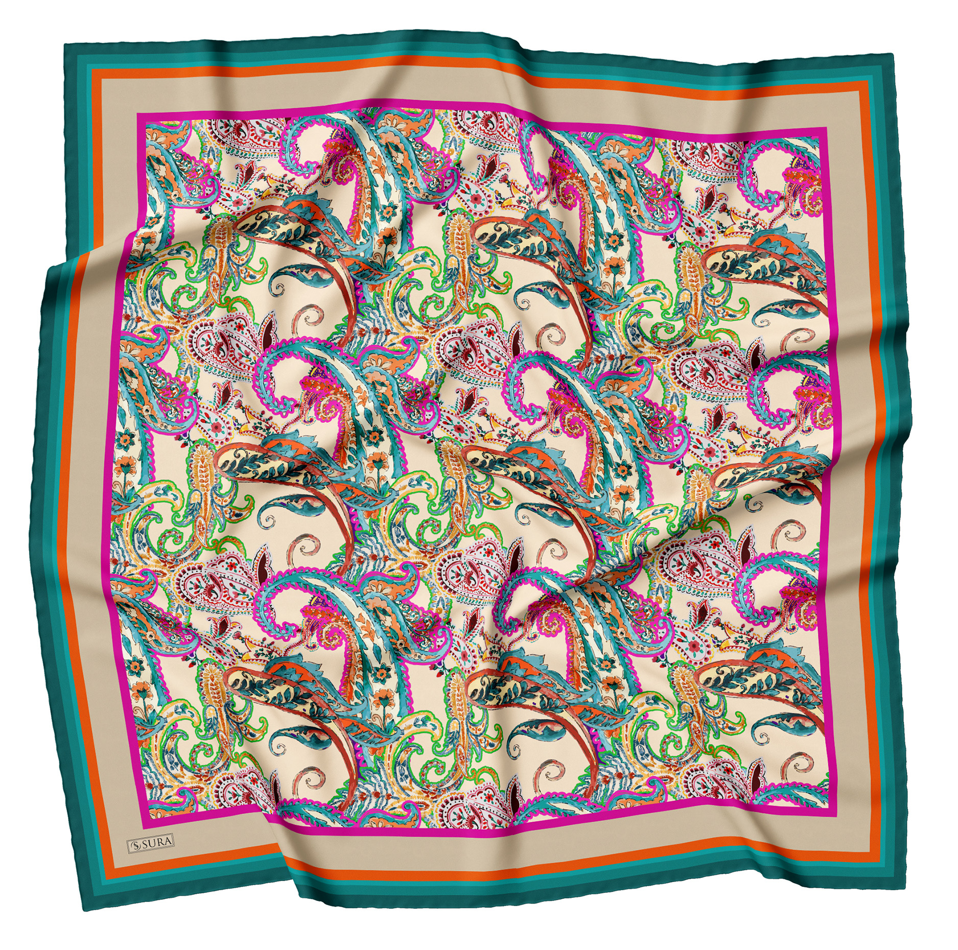 Sura İpek Eşarplar; % 100 İpek olarak 90*90 cm ölcülerinde ve kenarları tamamen el dikişi yapılarak beğenilerinize sunulmuştur.