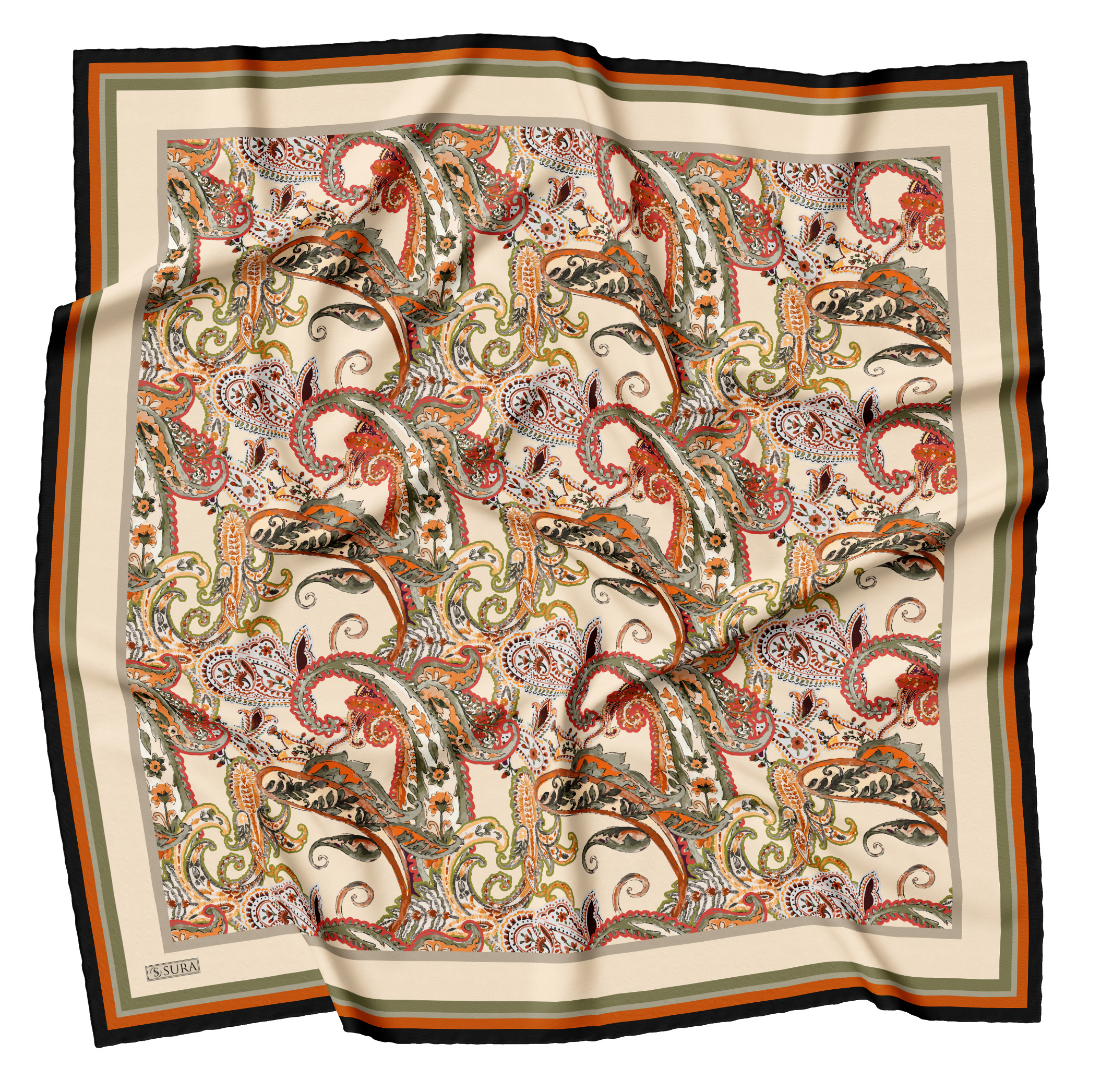 Sura İpek Eşarplar; % 100 İpek olarak 90*90 cm ölcülerinde ve kenarları tamamen el dikişi yapılarak beğenilerinize sunulmuştur.