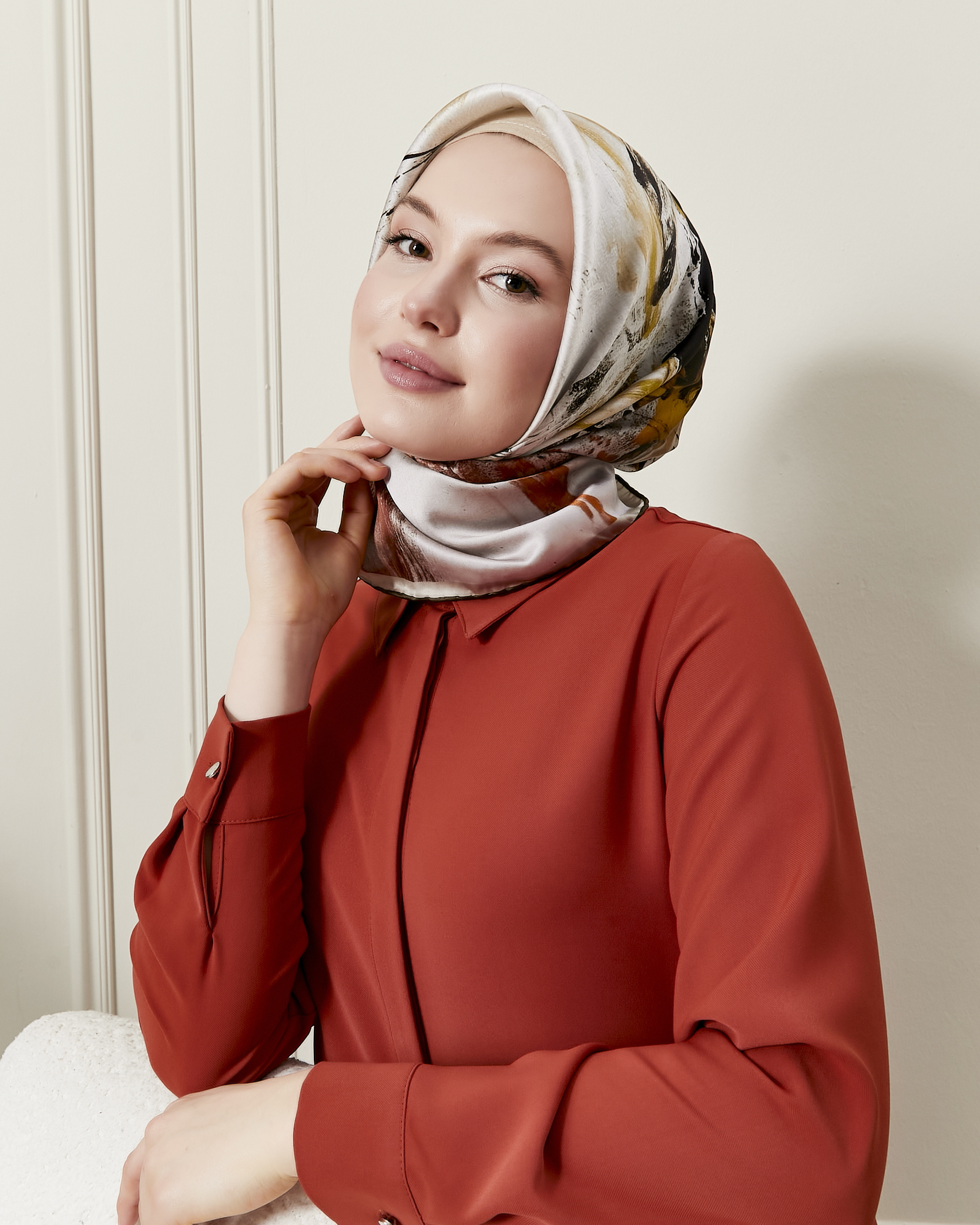SURA %100 İPEK SATEN EŞARP 90*90 7611-V3