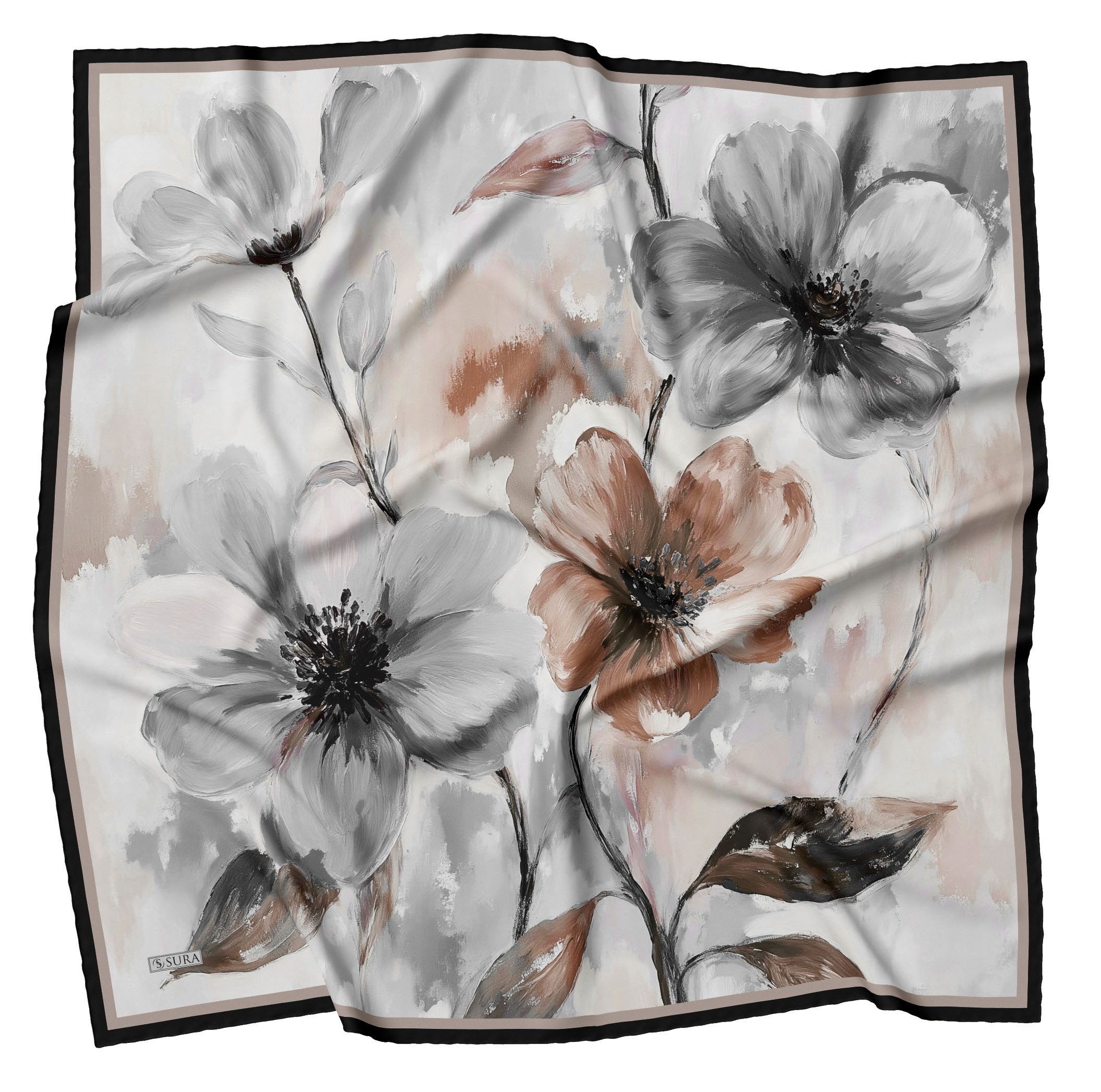 Sura İpek Eşarplar; % 100 İpek olarak 90*90 cm ölcülerinde ve kenarları tamamen el dikişi yapılarak beğenilerinize sunulmuştur.