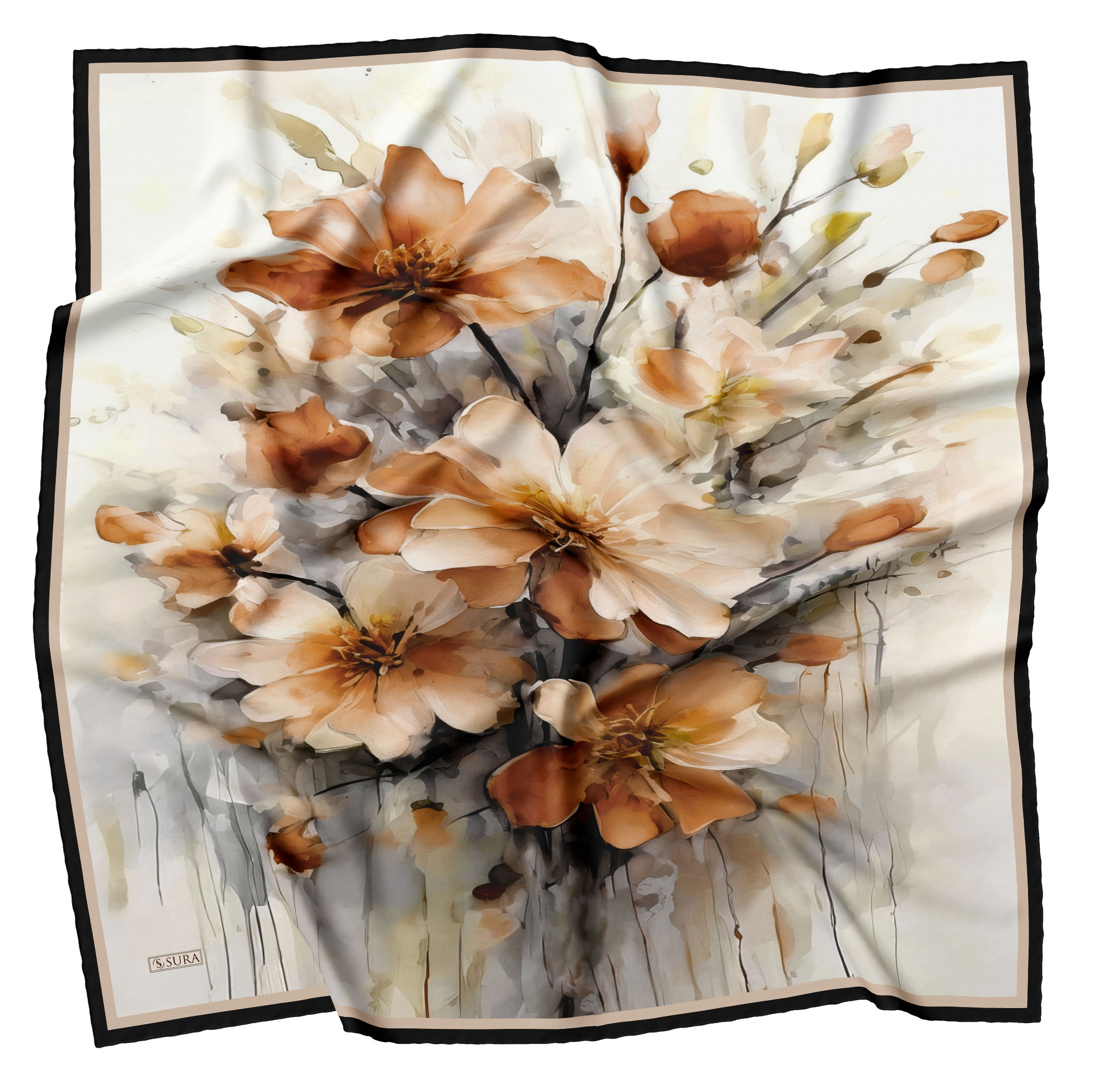 Sura İpek Eşarplar; % 100 İpek olarak 90*90 cm ölcülerinde ve kenarları tamamen el dikişi yapılarak beğenilerinize sunulmuştur.