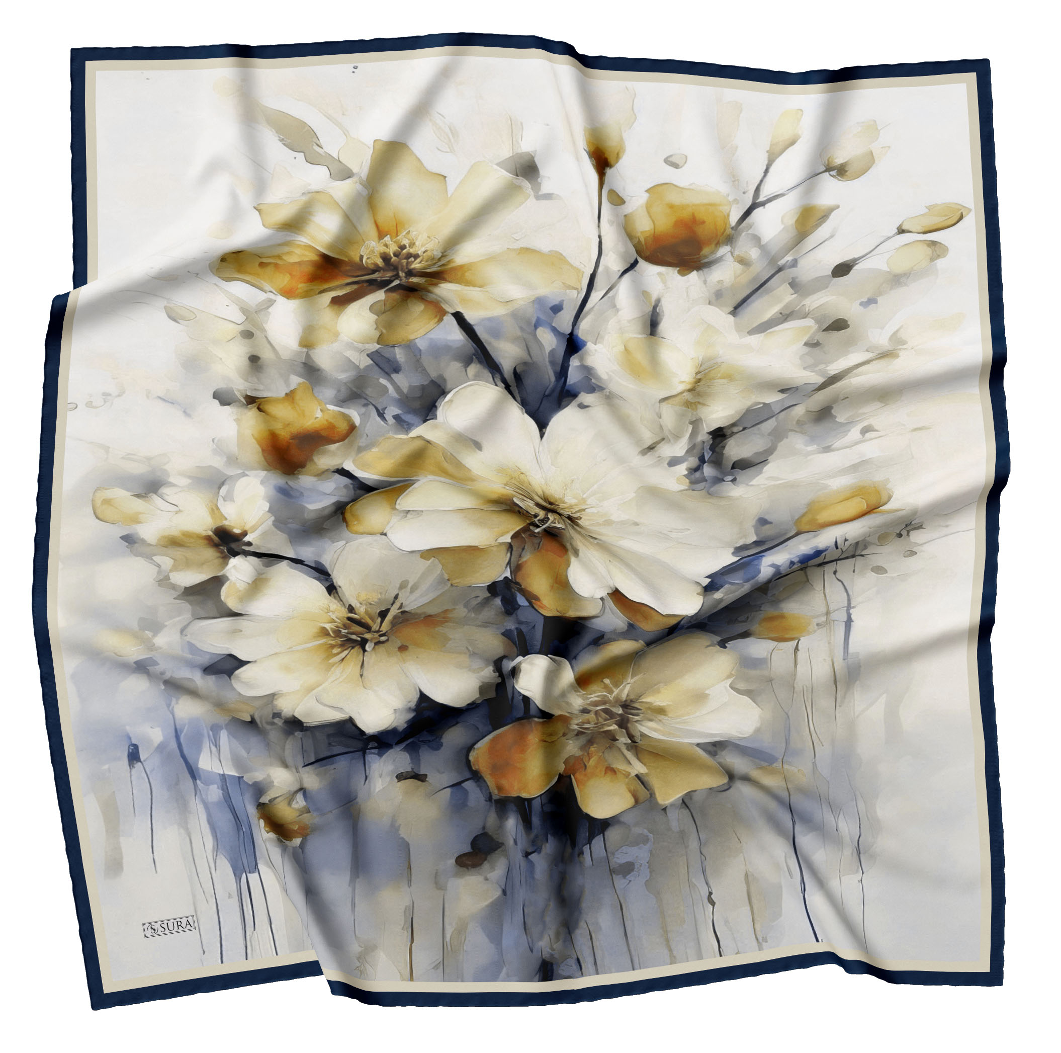 Sura İpek Eşarplar; % 100 İpek olarak 90*90 cm ölcülerinde ve kenarları tamamen el dikişi yapılarak beğenilerinize sunulmuştur.