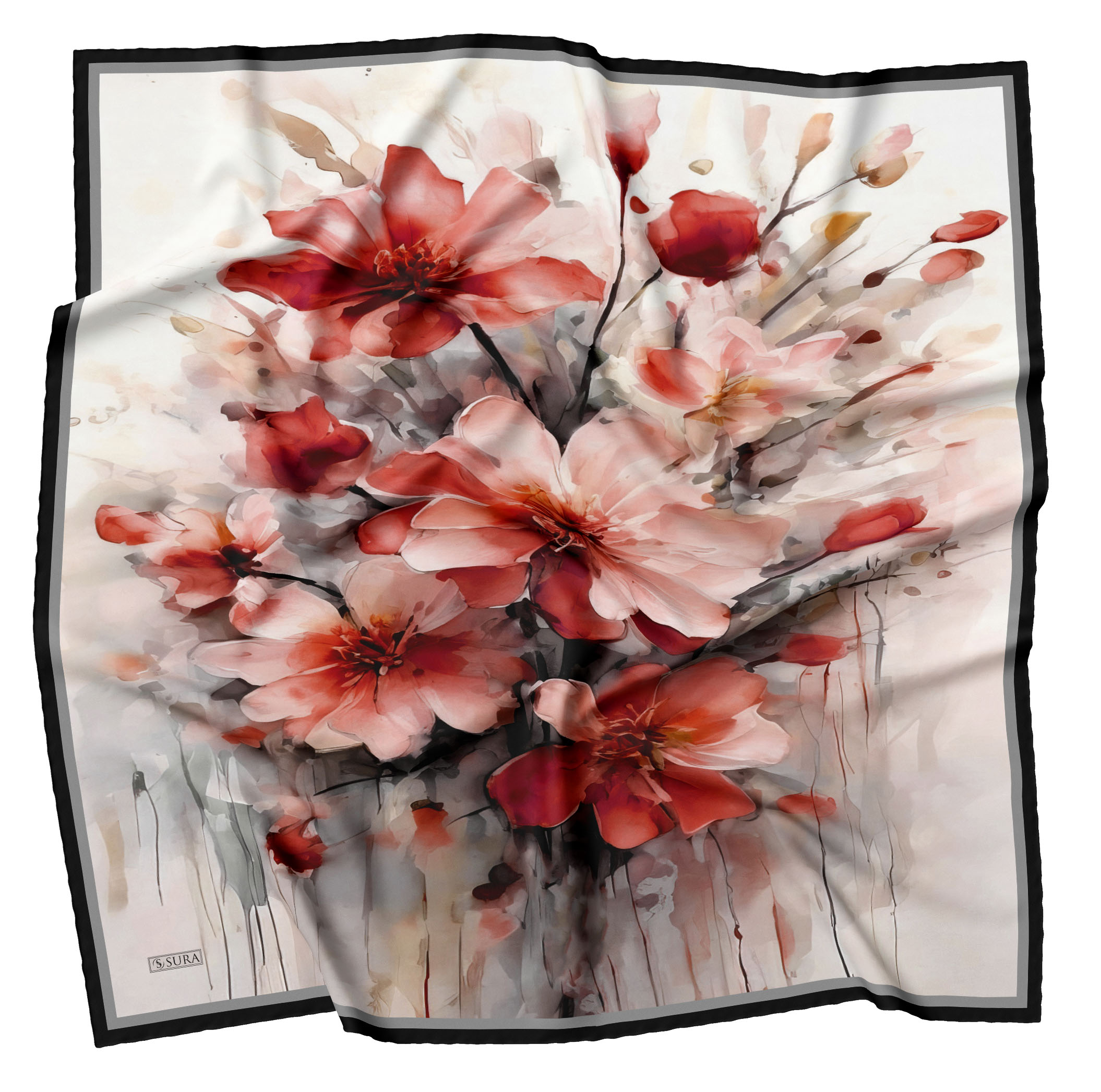 Sura İpek Eşarplar; % 100 İpek olarak 90*90 cm ölcülerinde ve kenarları tamamen el dikişi yapılarak beğenilerinize sunulmuştur.