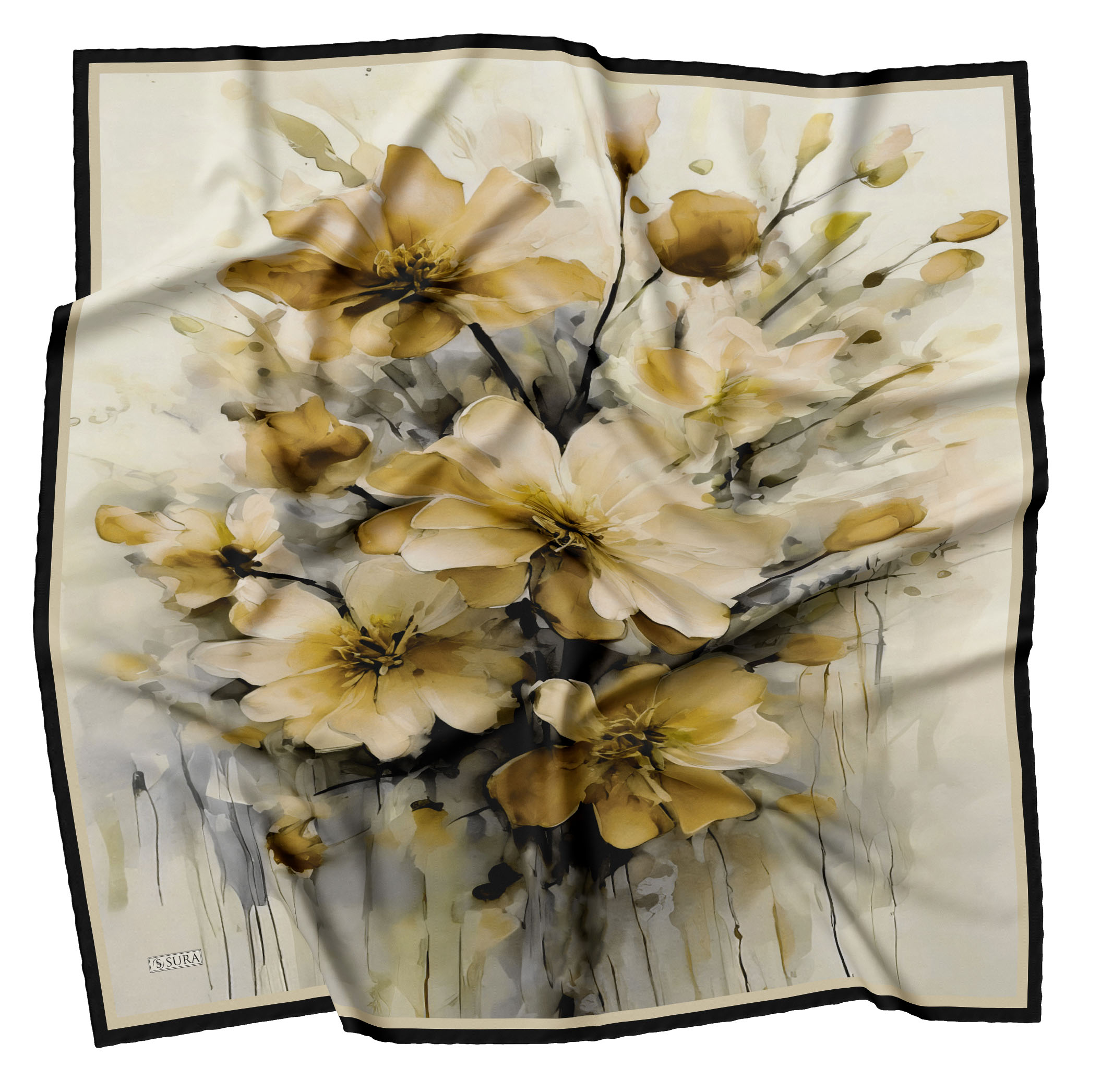 Sura İpek Eşarplar; % 100 İpek olarak 90*90 cm ölcülerinde ve kenarları tamamen el dikişi yapılarak beğenilerinize sunulmuştur.