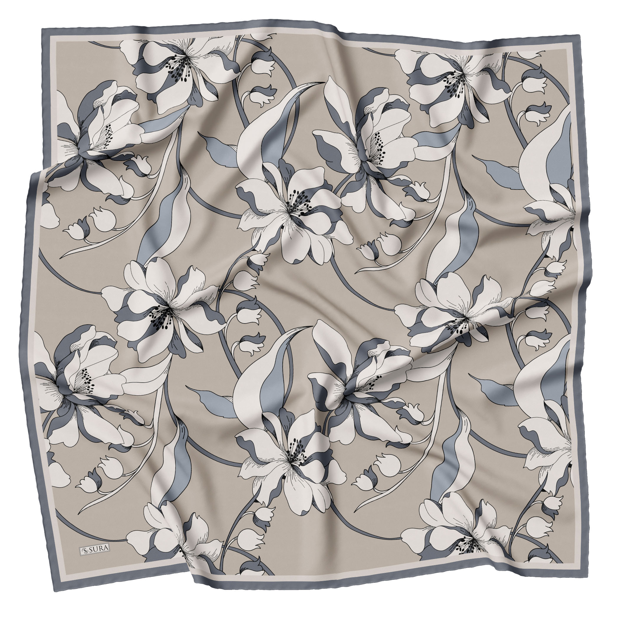 Sura İpek Eşarplar; % 100 İpek olarak 90*90 cm ölcülerinde ve kenarları tamamen el dikişi yapılarak beğenilerinize sunulmuştur.