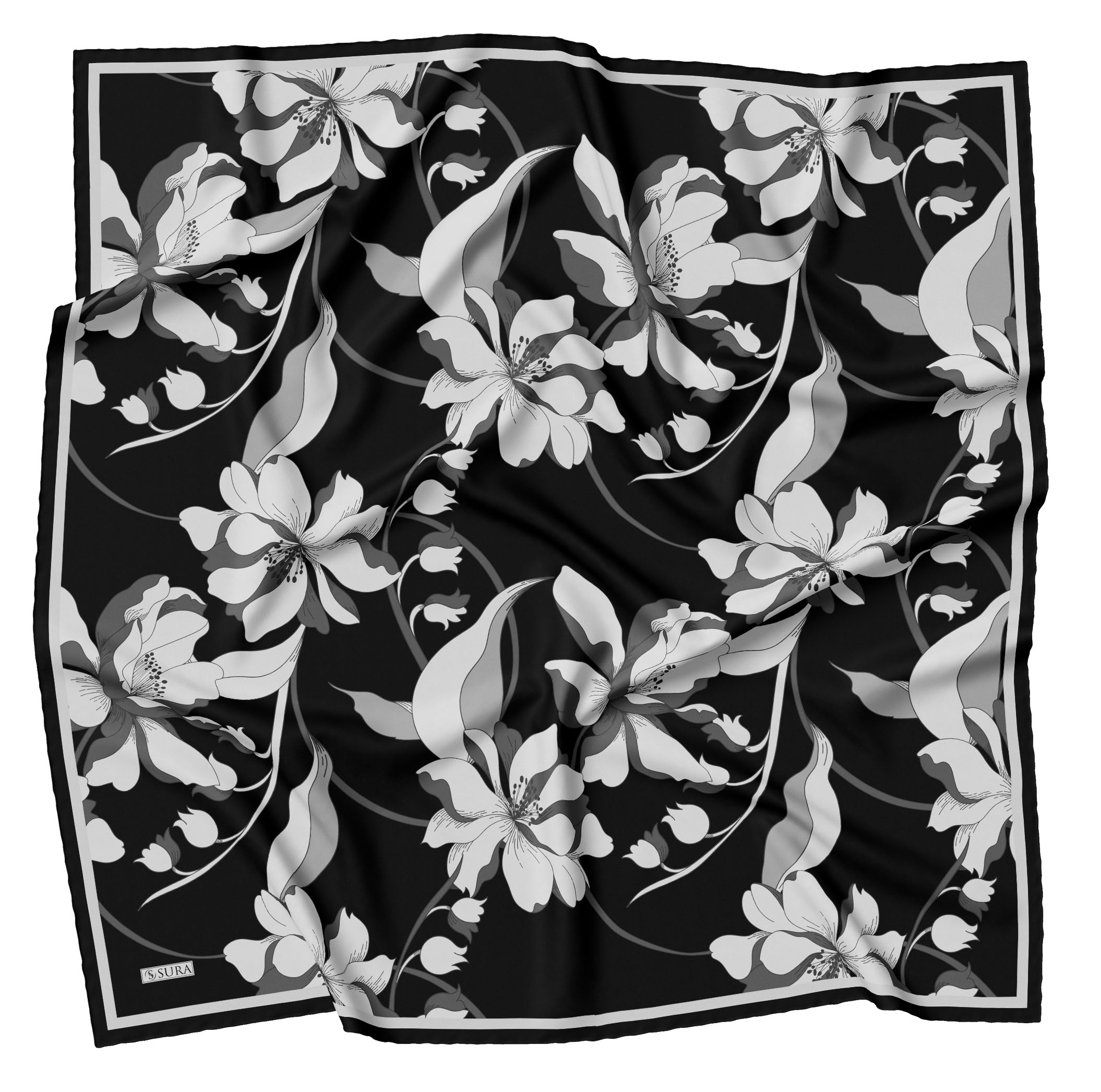 Sura İpek Eşarplar; % 100 İpek olarak 90*90 cm ölcülerinde ve kenarları tamamen el dikişi yapılarak beğenilerinize sunulmuştur.