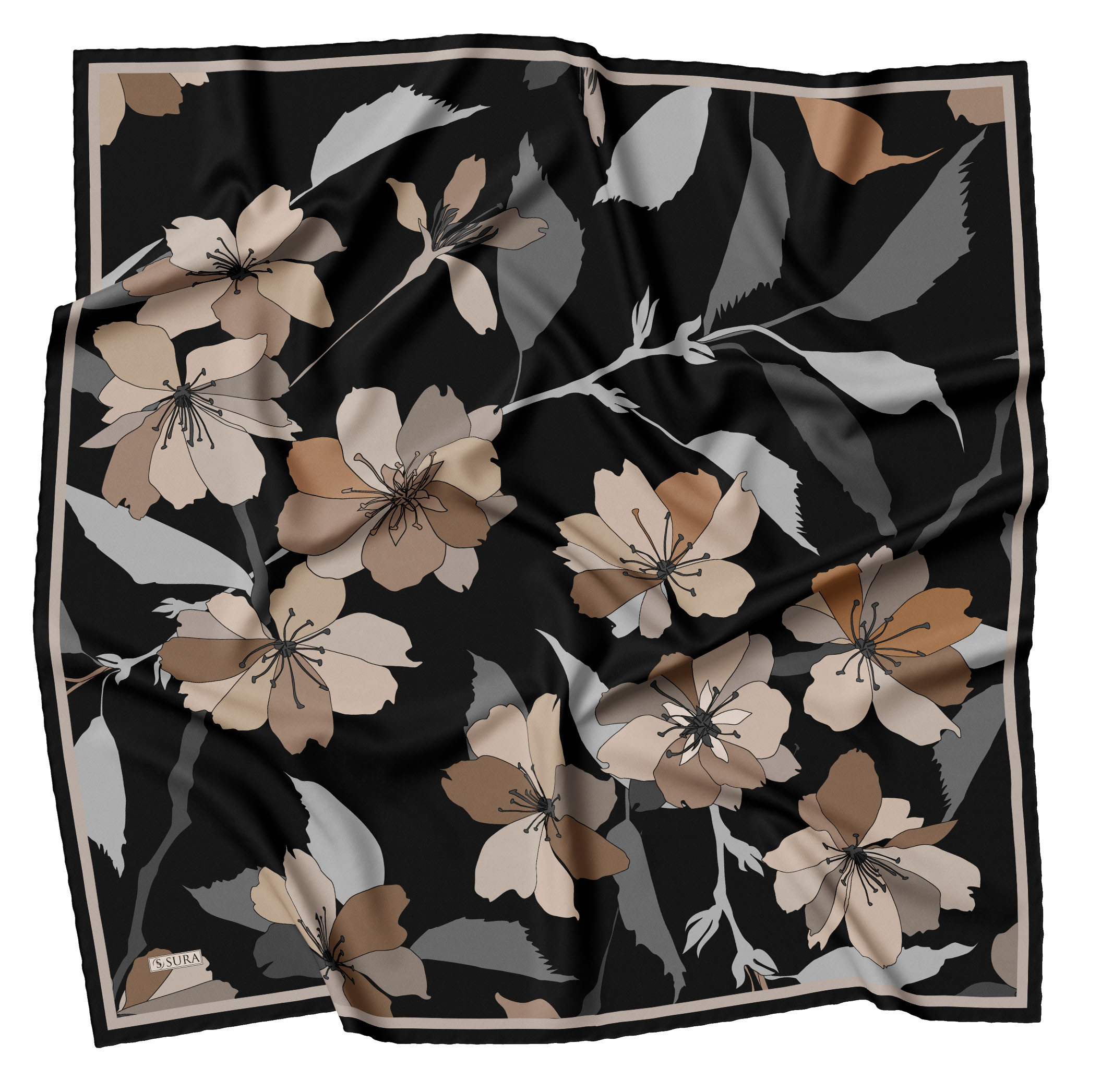 Sura İpek Eşarplar; % 100 İpek olarak 90*90 cm ölcülerinde ve kenarları tamamen el dikişi yapılarak beğenilerinize sunulmuştur.