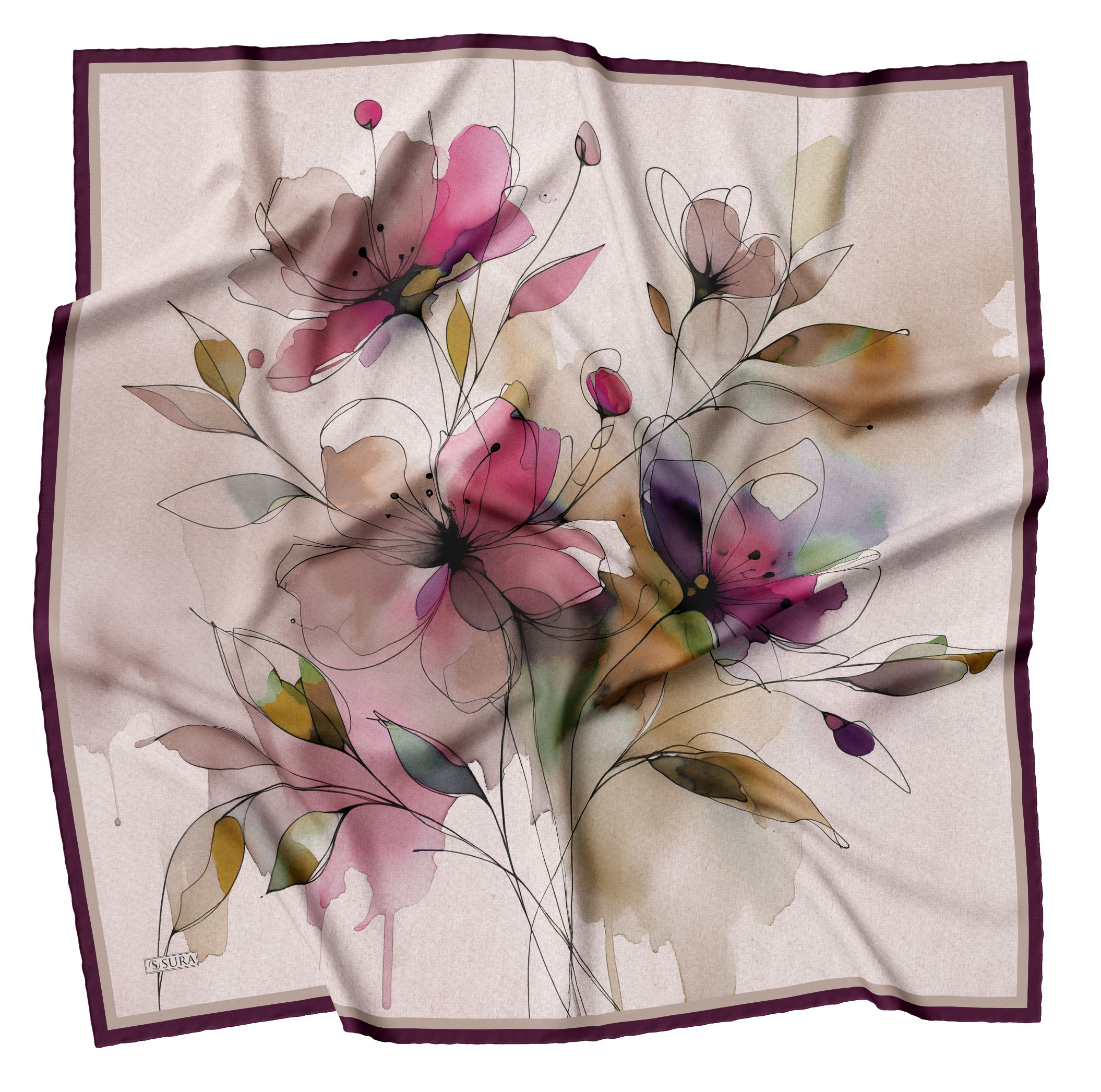Sura İpek Eşarplar; % 100 İpek olarak 90*90 cm ölcülerinde ve kenarları tamamen el dikişi yapılarak beğenilerinize sunulmuştur.