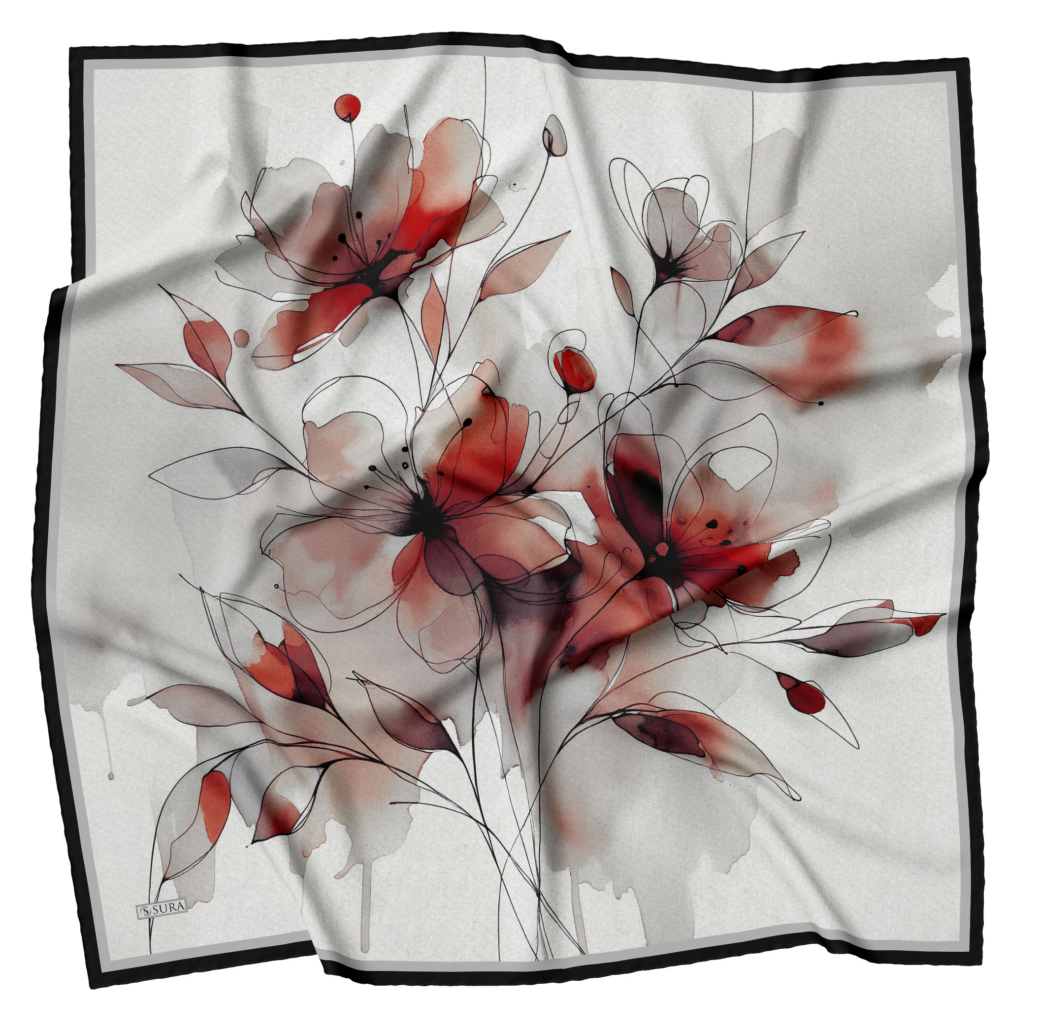 Sura İpek Eşarplar; % 100 İpek olarak 90*90 cm ölcülerinde ve kenarları tamamen el dikişi yapılarak beğenilerinize sunulmuştur.