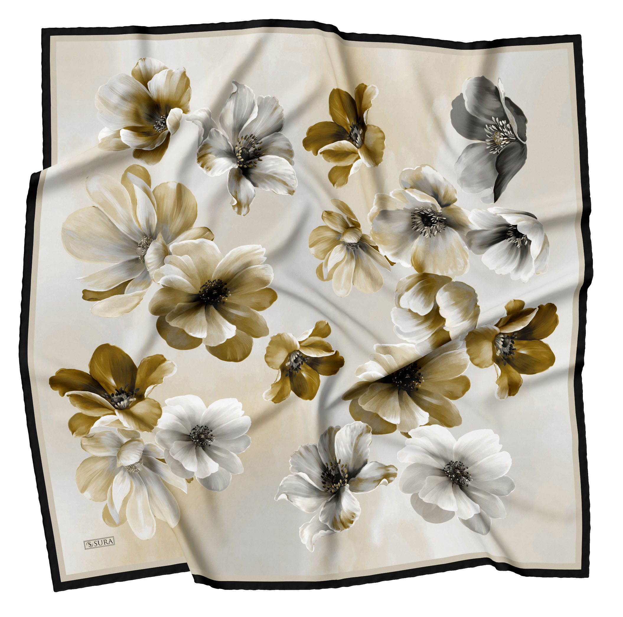 Sura İpek Eşarplar; % 100 İpek olarak 90*90 cm ölcülerinde ve kenarları tamamen el dikişi yapılarak beğenilerinize sunulmuştur.