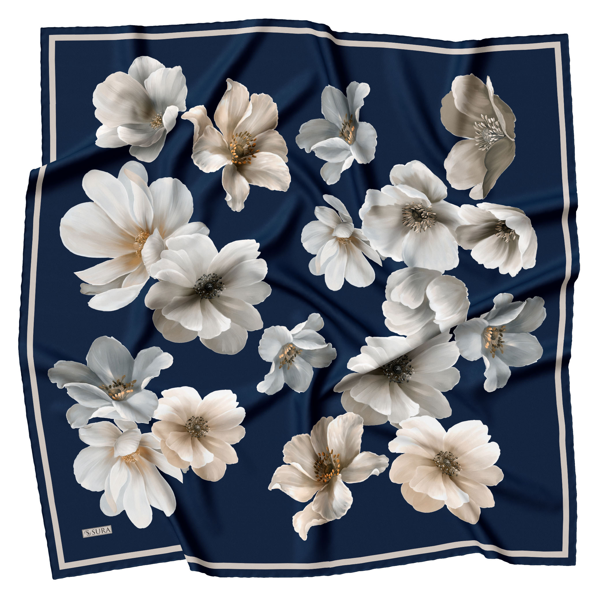 Sura İpek Eşarplar; % 100 İpek olarak 90*90 cm ölcülerinde ve kenarları tamamen el dikişi yapılarak beğenilerinize sunulmuştur.