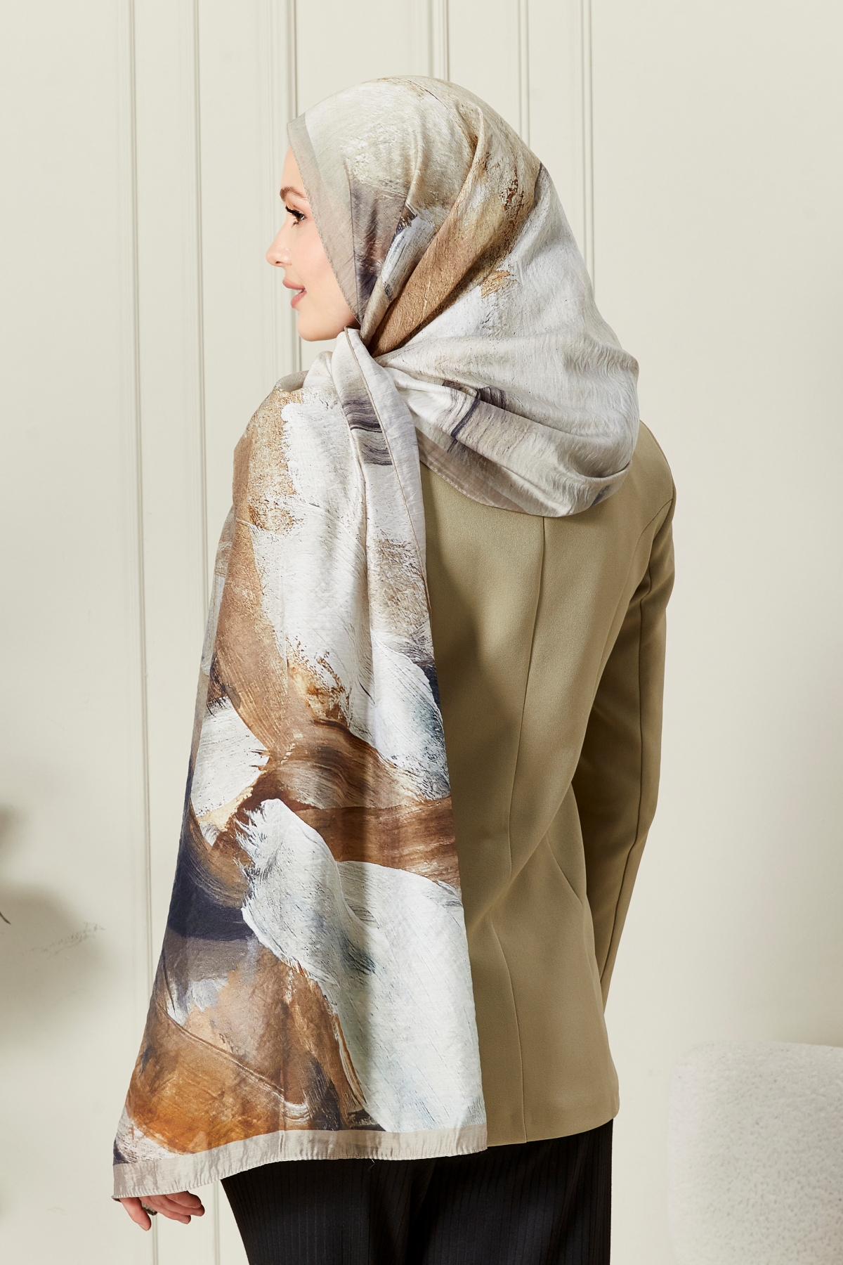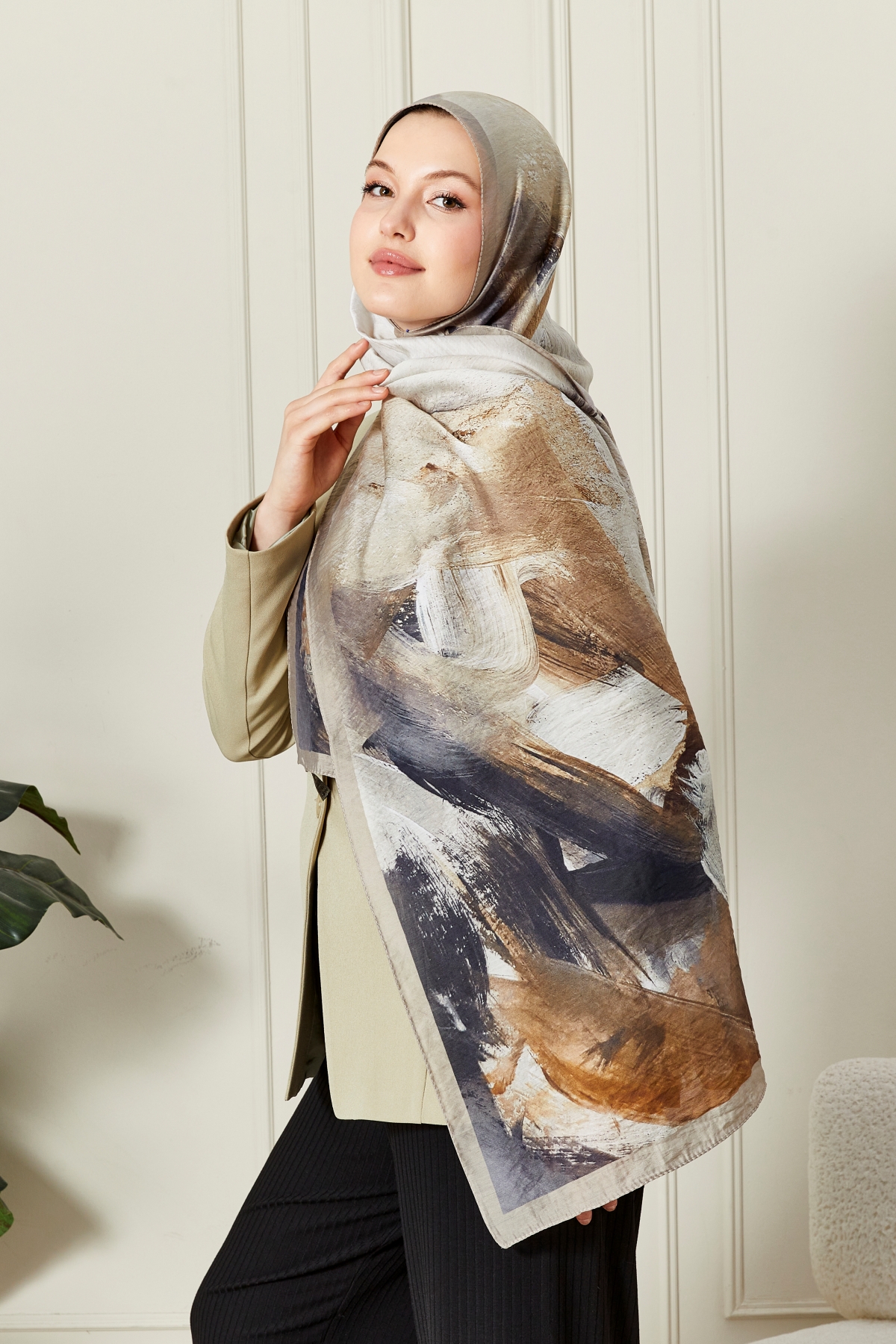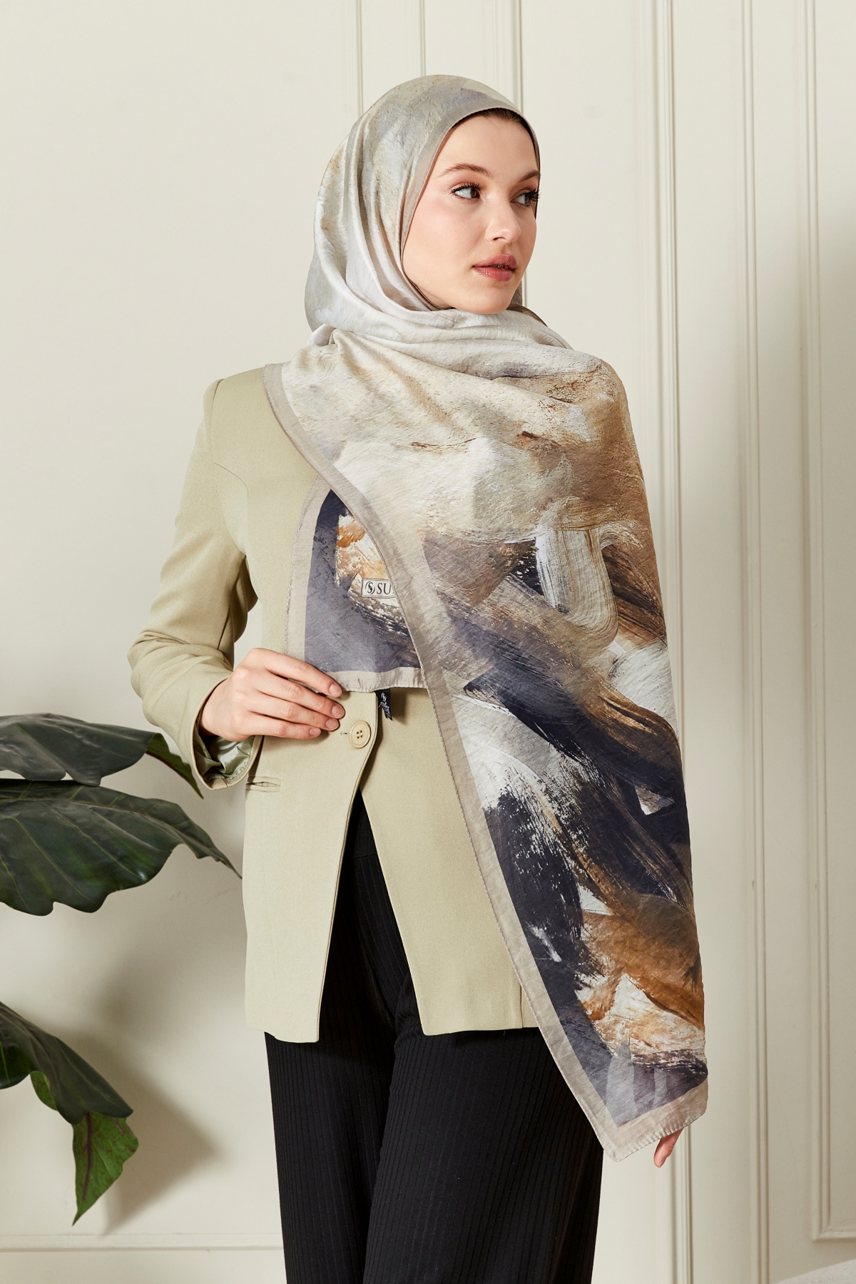 Ürün Özellikleriİpeğin doğal parlaklığı ile tenselin yumuşak ve nefes alabilen yapısı, bu özel şalda buluşuyor. Doğal liflerin uyumu sayesinde kumaş hem zarif bir ışıltıya hem de hafif ve konforlu bir dokuya sahiptir.İpeğin lüks dokusu ince bir parlaklık sunarken, tenselin selüloz bazlı yapısı ciltle uyumlu, nefes alabilen ve yumuşak bir his sağlar. Nem dengeleyici özelliği ile yazın serin, kışın sıcak tutar. Kırışmaya karşı dayanıklı ve formunu uzun süre korur.Zamansız desenleri ve geniş renk seçenekleriyle hem spor hem klasik kombinlerle kolayca uyum sağlar. Şıklığınıza zarif bir dokunuş katmak için ideal bir parça